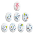 Состав: сахар, патока крахмальная, сухой яичный белок, загустители (Е466,Е1422),желатин, регулятор кислотности (к-та лимонная), красители пищевые (в ассортименте)
