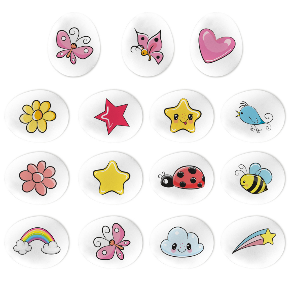 Овальные фигурки 10х15 мм с нанесением рисунка пищевыми красителями. Мини-медальоны — готовое решение для простого, быстрого и стильного декора любых кондитерских изделий: тортов, пирожных, капкейков, куличей и других. Специально адаптированы для более длительного нахождения на изделиях с повышенной влажностью (все виды кремов, сливок, гелей, зеркальных глазурей). Подходит для кондитерской продукции недлительного и длительного хранения. Рисунок нанесен на белую основу, что предотвращает миграцию красителя на декорируемую поверхность.