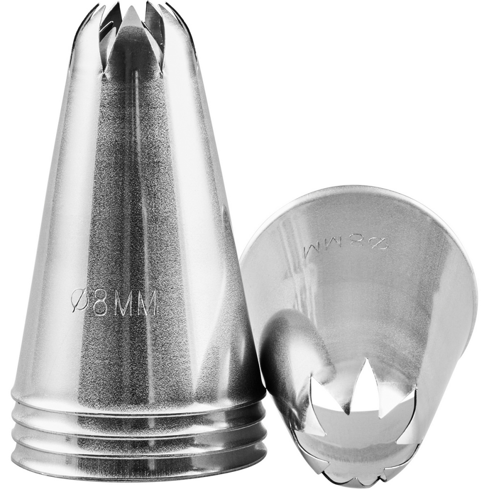 Состав: нержавеющая сталь Размеры: высота 50мм Предназначены для отсадки различных кондитерских масс из кондитерского мешка, придают изделию вид и размер (например для отсадки печенья на лист для выпечки). С помощью насадок декорируют торты и пирожные взбитыми сливками, различными кремами /BC326/