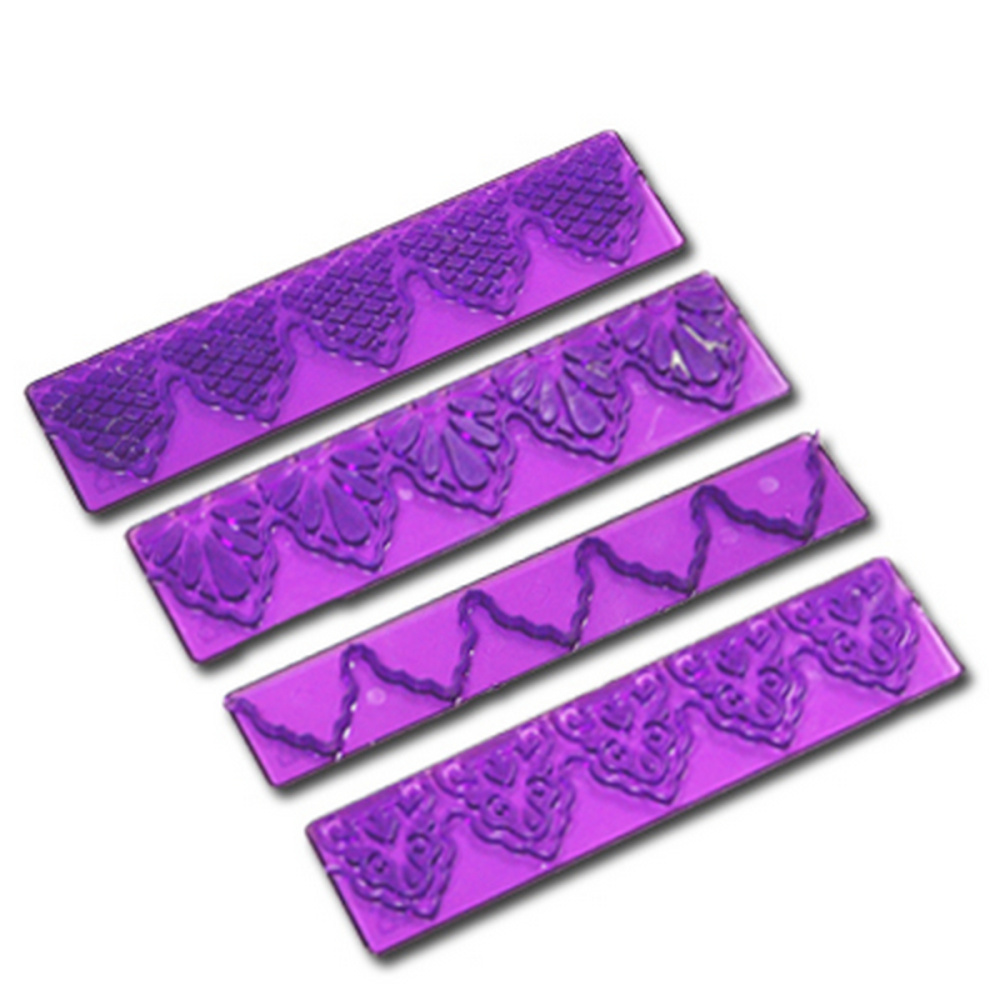 Оттиски применяется для изготовления декора из мастики путём создания объёмного рисунка. В наборе 4 оттиска с итоговым размером риснука: 138x30мм (3 штуки), 138x20мм. Размер