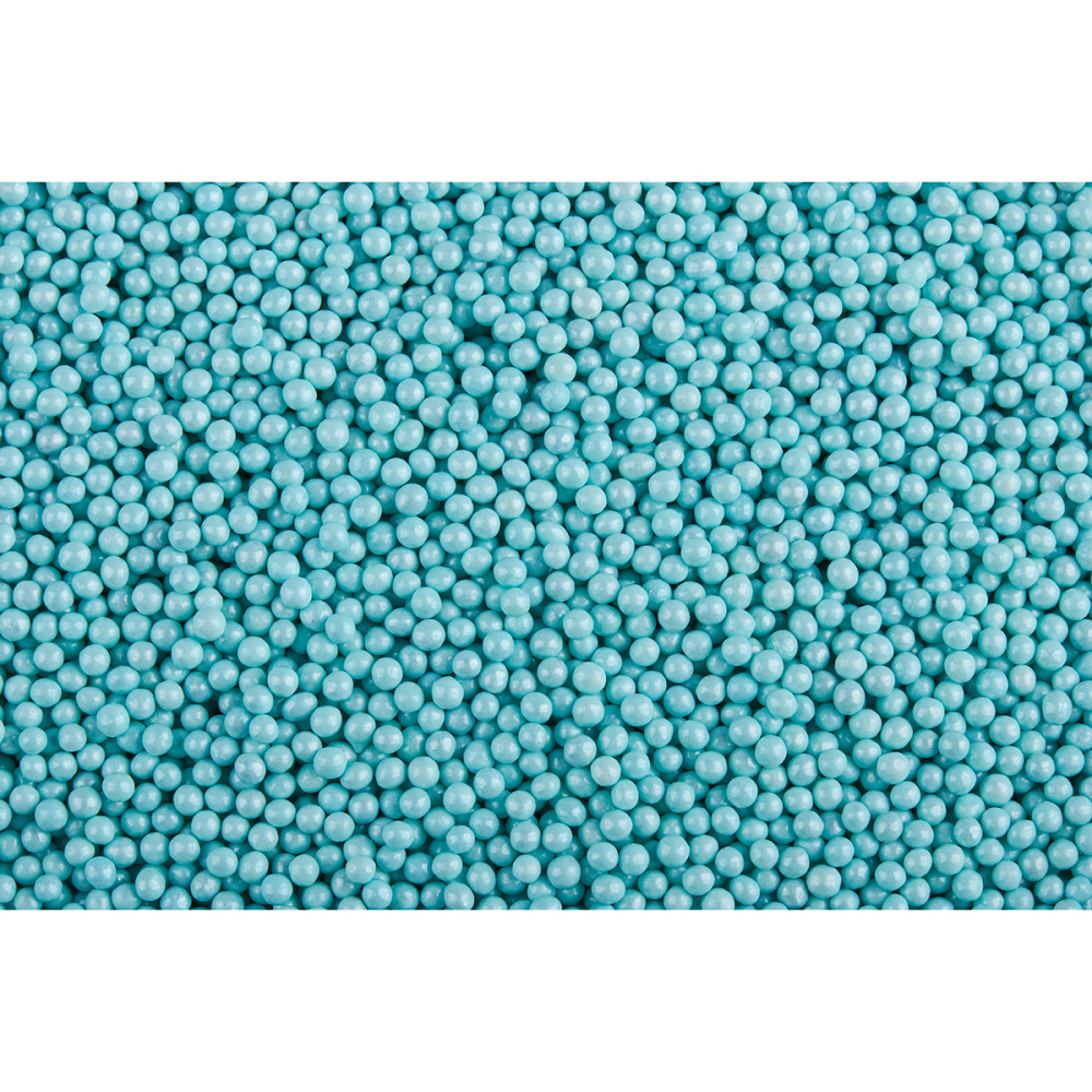 Перламутровые шарики — декор из сахара и крахмала диаметром 2 мм со специальным покрытием с эффектом перламутра. Такое покрытие делает шарики более устойчивыми к влаге и препятствует образованию ореола окрашивания на влажных поверхностях. Одно из преимуществ шариков — высокая укрывистость декорируемой поверхности, что позволяет наносить эти посыпки через трафарет для получения рисунков и надписей. Шарики подходят для декора верхней и боковой поверхности из шоколада, мастики. Используются на сливочном, масляном, творожном, белковом креме, на кондитерских глазурях, помадке, желе. Продаются в упаковке по 1 кг.