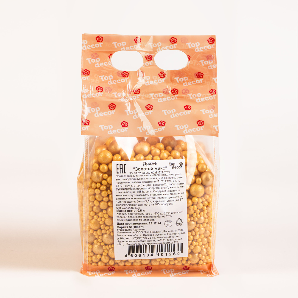 Фигурные посыпки — декор на основе сахара и рисовой муки, подчеркивающий принадлежность десерта к определенному празднику, событию или идее при минимуме трудозатрат на процесс декорирования. Это съедобный аналог эмодзи, с помощью которого можно передать послание без надписей и слов. Используются на сливочном, масляном, творожном, белковом креме, кондитерских глазурях, желейных и мармеладных массах, на шоколаде и мастике. Фигурные посыпки подходят для декора верхней и боковой поверхности десерта, их можно добавлять внутрь изделия (например, в леденцы). Специальная глазировка не дает цвету посыпок мигрировать на декорируемую поверхность. Декор посыпками легко внедрить на производстве любого размера. Продаются в упаковке по 0,6 кг.