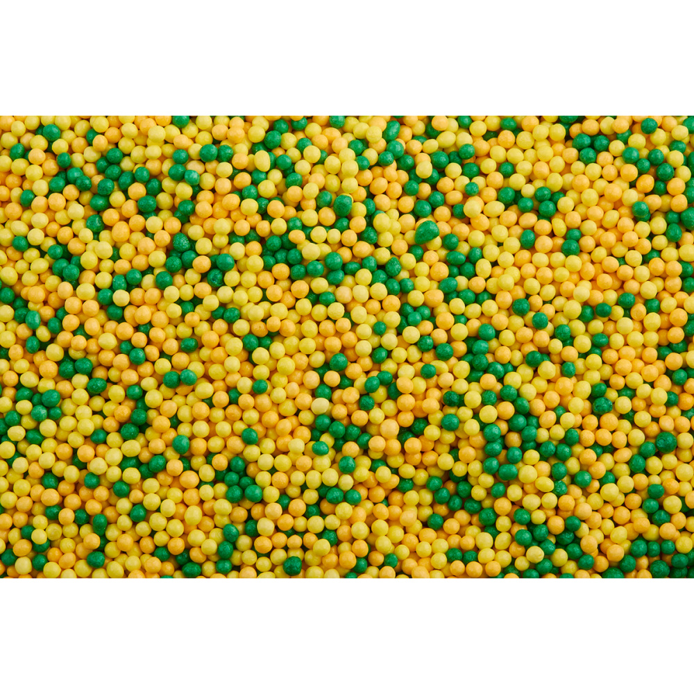 Шарики, или нонпарель (от франц. nonpareil — несравненный) — это цветное драже диаметром 1 мм на основе сахара и крахмала, которое используются для украшения десертов. Одно из преимуществ шариков — высокая укрывистость декорируемой поверхности, что позволяет наносить эти посыпки через трафарет для получения рисунков и надписей. Шарики подходят для декора верхней и боковой поверхности из шоколада, помадки, глазури, мастики. Продаются в пакетах по 1 кг.