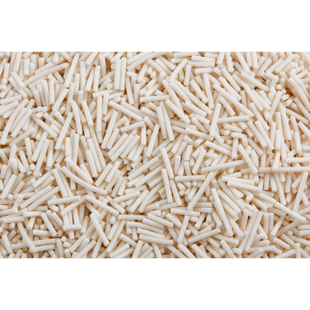 Сахарная вермишель — посыпка толщиной 1,2-1,5 мм на основе сахара и рисовой муки. Используется как самостоятельный декор, элемент композиции, а также для создания фактуры (имитации травы, шерсти и т.д). Применяется на сливочном, масляном, творожном, белковом креме, кондитерских глазурях, желейных и мармеладных массах, на шоколаде и мастике. Вермишель подходит для декора верхней и боковой поверхности десерта. Посыпку также можно добавлять внутрь изделия (например, в леденцы). Специальная глазировка не дает цвету посыпок мигрировать на декорируемую поверхность. Продаётся в пакете по 0,75 кг.