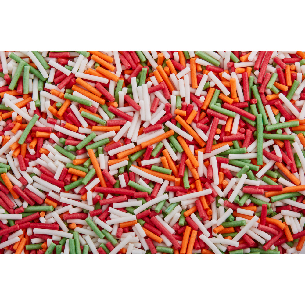 Сахарная вермишель — посыпка толщиной 1,2-1,5 мм на основе сахара и рисовой муки. Используется как самостоятельный декор, элемент композиции, а также для создания фактуры (имитации травы, шерсти и т.д). Применяется на сливочном, масляном, творожном, белковом креме, кондитерских глазурях, желейных и мармеладных массах, на шоколаде и мастике. Вермишель подходит для декора верхней и боковой поверхности десерта. Посыпку также можно добавлять внутрь изделия (например, в леденцы). Специальная глазировка не дает цвету посыпок мигрировать на декорируемую поверхность. Продаётся в пакете по 0,75 кг.