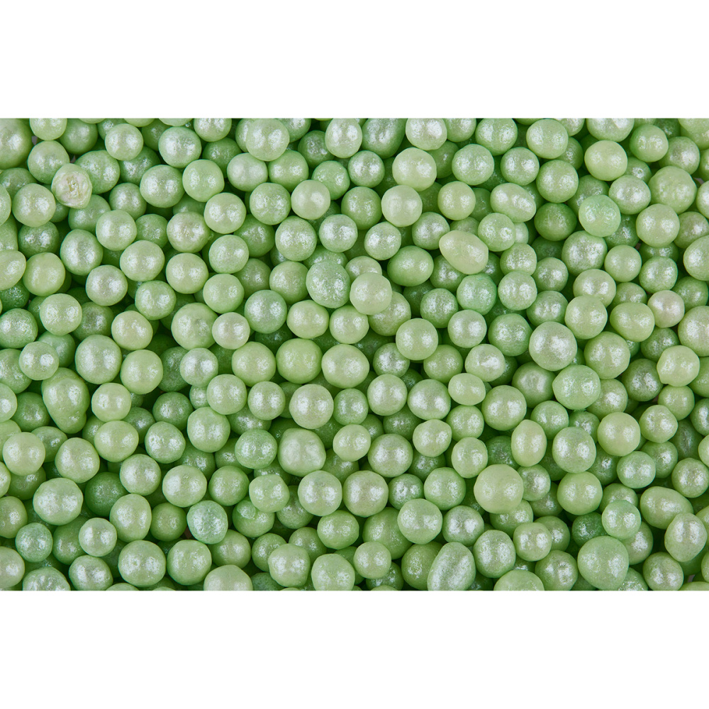 Шарики «Жемчуг» — это посыпки с мягкой сердцевиной из воздушного экструзионного риса и плотной сахарной оболочкой. Шарики покрыты перламутровым глянцем, который придает не только схожесть с жемчугом, но и устойчивость к влаге. Подходят для декора верхней и боковой поверхности десерта из шоколада, мастики. Используются на сливочном, масляном, творожном, белковом креме, кондитерских глазурях, помадке, желе. Продаются в упаковке по 0,7 кг.