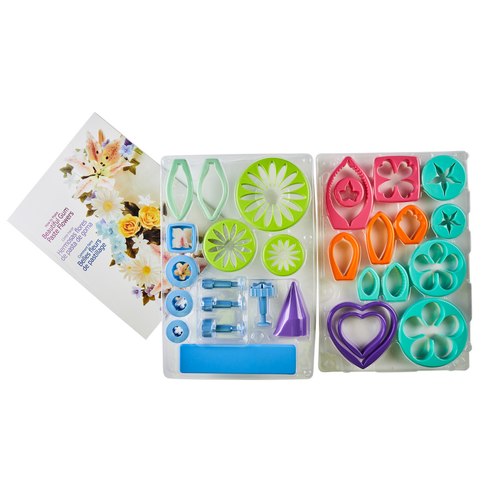 Готовый набор для изготовления цветов и цветочных веток из мастики и марципана. Подойдёт как новичкам, так и опытным кондитерам. Включает в себя 29 предметов и многостраничную, иллюстрированную пошаговую инструкцию по изготовлению цветов и букетов на английском языке.