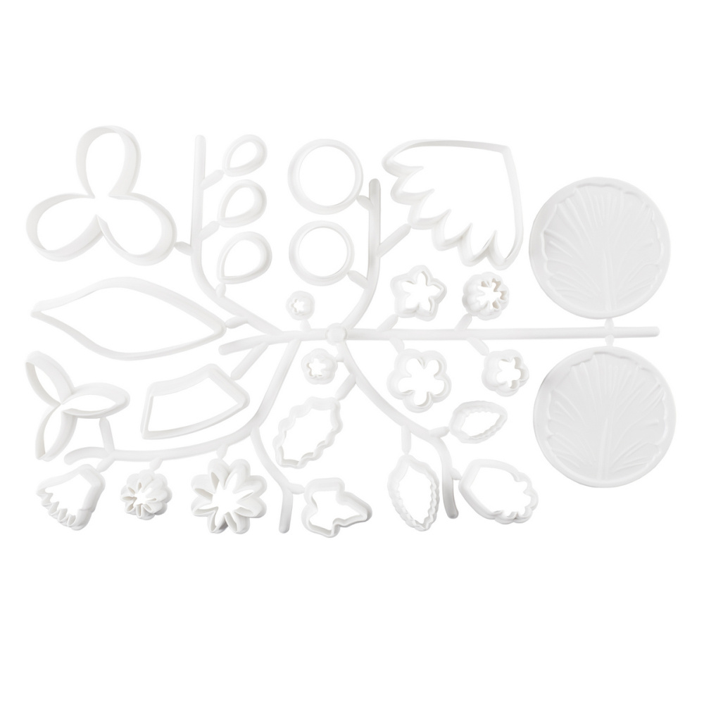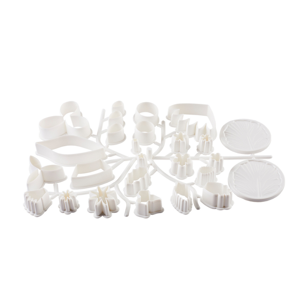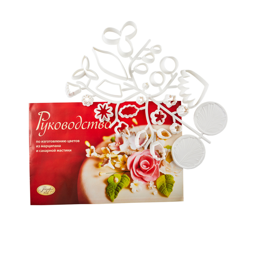 Готовый набор для изготовления цветов из мастики и марципана. Подойдёт как новичкам, так и опытным кондитерам. Включает в себя 24 вырубки, 2 оттиска и многостраничную, иллюстрированную инструкцию по изготовлению.