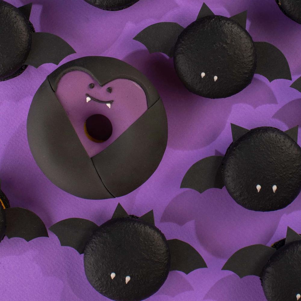 Идея декорирования "Черный Хэллоуин" представляет собой пончики и макаронс, окрашенные в черный цвет с использованием пищевого красителя от Top Decor. Этот мрачный и загадочный визуальный эффект создает атмосферу Хэллоуина и придает десертам особый характер. Черные пончики и макаронс могут стать необычным угощением на Хэллоуинской вечеринке или стильным акцентом на тематическом столе.