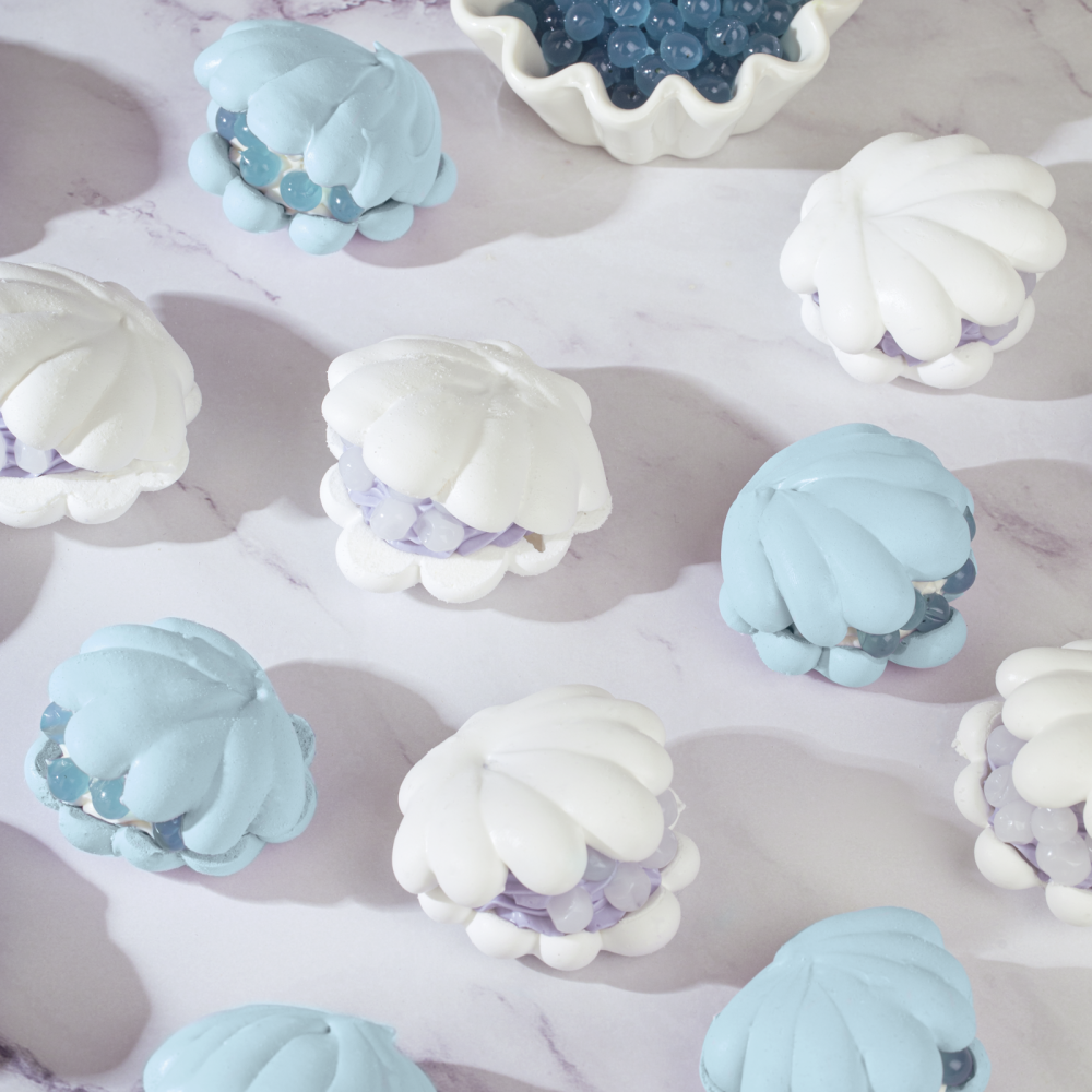 Десерт Павлова "Ракушка" с Джус Бабл со вкусом голубики и йогурта - утончённый и при этом простой в приготовлении десерт, который удивит не только вкусом, но и подачей. Хрупкая меренга в виде ракушки создаётся легко и быстро с помощью сухой смеси для меренг от Top Decor — идеальное решение для тех, кто ценит качество и удобство.