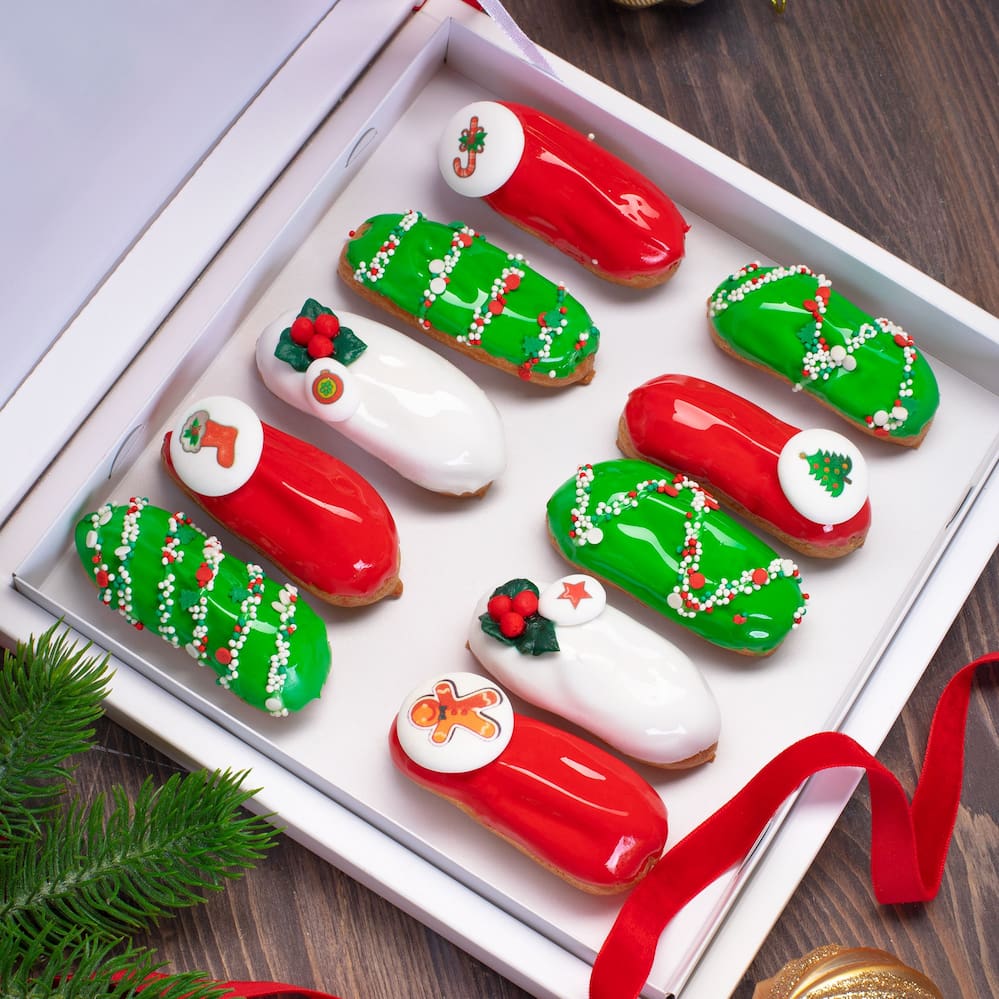 Идея декорирования "Эклеры к Рождеству" представляет собой эклеры, оформленные в рождественском стиле с использованием символов новогодних игрушек в виде сахарных медальонов и посыпками от Top Decor. На изображении видно, как эклеры становятся украшением праздничного стола. Сахарные медальоны с изображением новогодних игрушек придают эклерам праздничный вид и создают атмосферу Рождества. Посыпки от Top Decor добавляют яркости и дополнительные декоративные элементы к этой идее. Эклеры к Рождеству - это отличный выбор для тех, кто хочет порадовать себя и своих близких вкусным и праздничным десертом во время рождественских праздников.