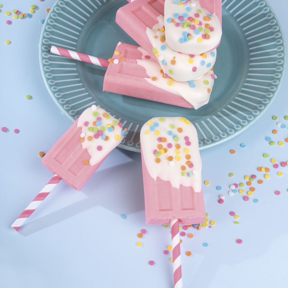 Эскимо "Вкус лета" — это настоящее воплощение солнечного настроения и радости тёплых дней! Нежное мороженое, окрашенное гелевым водорастворимым красителем Top Decor в сочном оттенке "Розовый леденец", сразу привлекает внимание своим аппетитным внешним видом.
