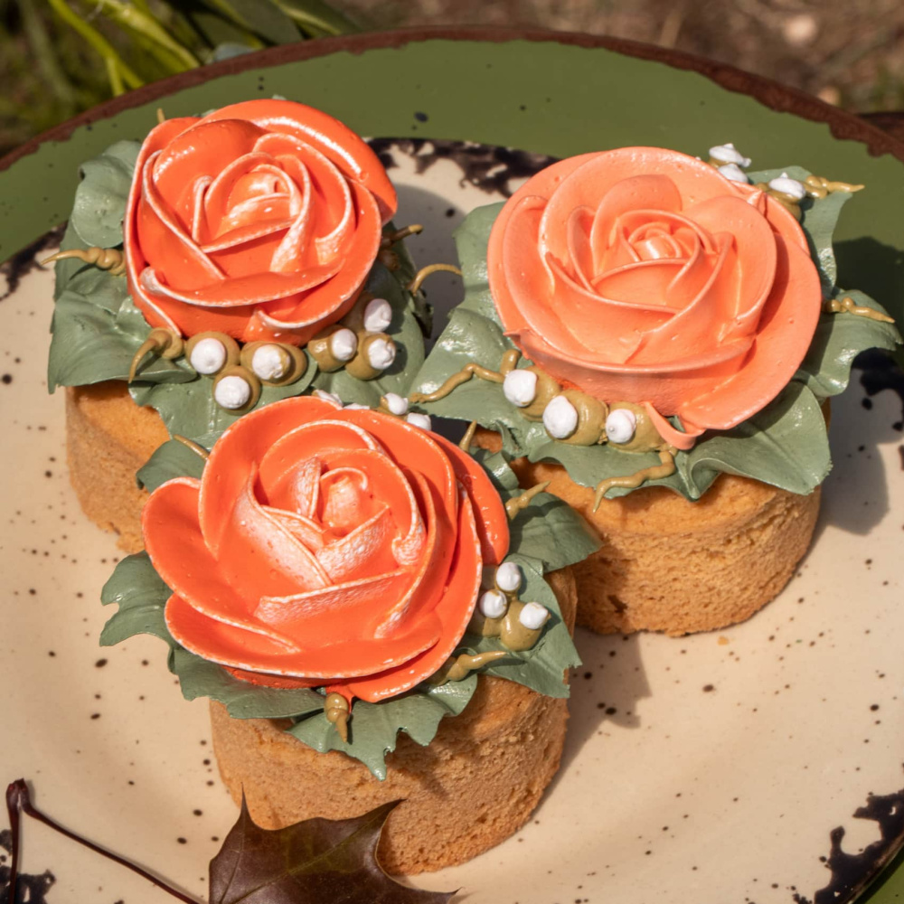 Идея декорирования "Капкейки с нежными розами" представляет капкейки, украшенные кремовыми розами в двух осенних цветах: "Морковный" и "Нефрит". Эти нежные и изящные розы создают прекрасное сочетание оттенков и придают капкейкам изысканный вид. Они станут ярким украшением на праздничном столе или приятным подарком для особого случая. Каждый капкейк становится уникальным произведением искусства, благодаря внимательно созданным розам, которые добавляют нежности и элегантности этому десерту.