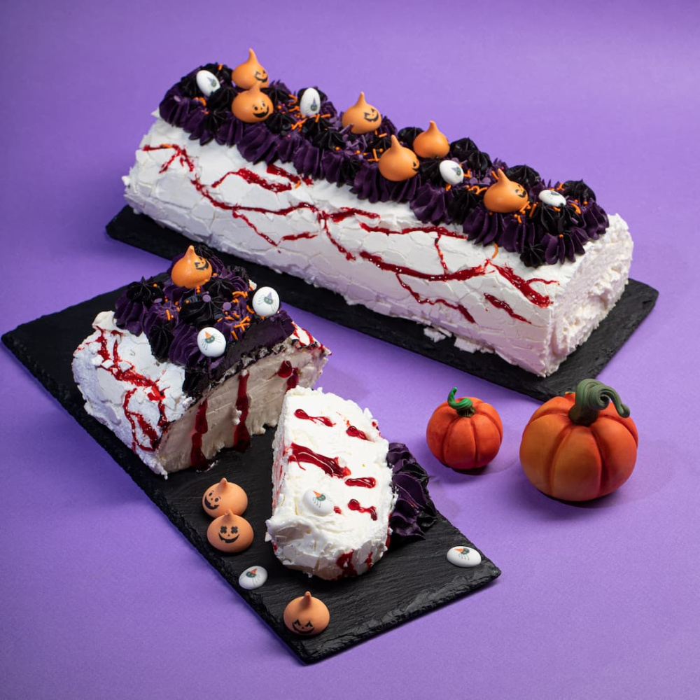 Идея декорирования "Меренговый рулет к Хэллоуину" представляет собой меренговый рулет, вдохновленный тематикой Хэллоуина. Десерт украшен сахарными фигурками "Тыквочки" и посыпками от Top Decor, создавая атмосферу праздника и добавляя уникальный визуальный эффект. Этот десерт станет отличным дополнением к Хэллоуинскому столу или украшением для тематических мероприятий.