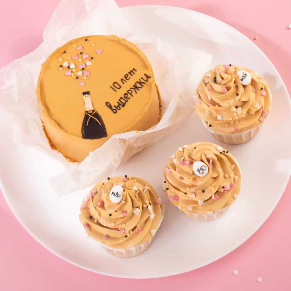 Идея декорирования "Праздничный бенто-набор" представляет собой яркий набор десертов, в который входит бенто-торт с тематическим дизайном и 5 капкейков. Такие десерты станут отличным подарком на годовщину свадьбы и украсят праздничный стол.