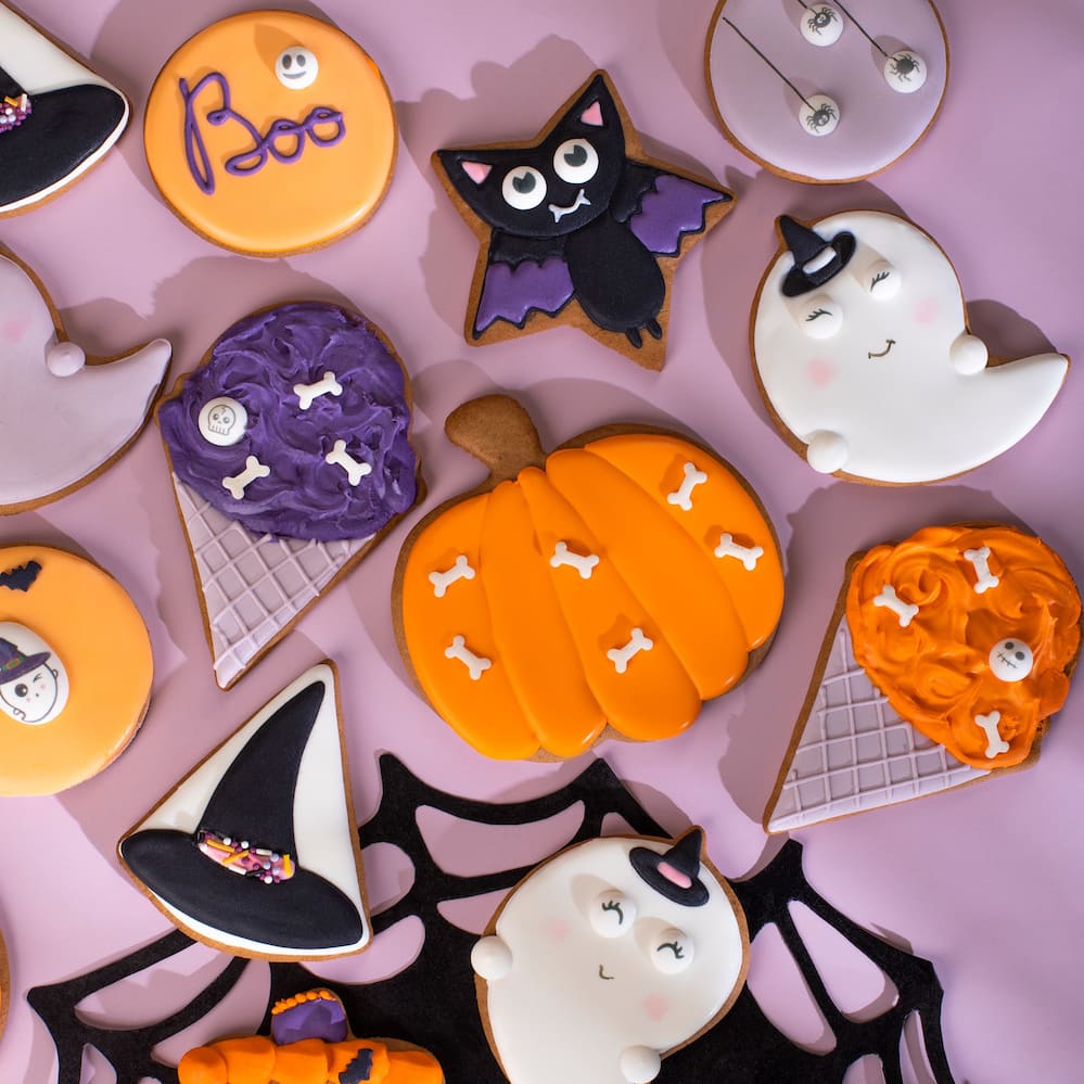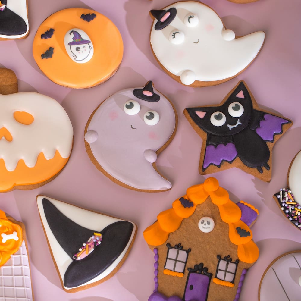 Идея декорирования "Пряники к Хэллоуину" представляет собой пряники, выполненные в тематике Хэллоуина. Пряники украшены сахарными мини-медальонами "Глазки / реснички круглые", медальонами "Хэллоуин" и посыпками от Top Decor. Цветовая гамма пряников соответствует характерным цветам Хэллоуина, создавая атмосферу праздника и загадочности. Эта идея декорирования подойдет для тех, кто хочет добавить веселых и стильных акцентов к своему Хэллоуинскому столу.