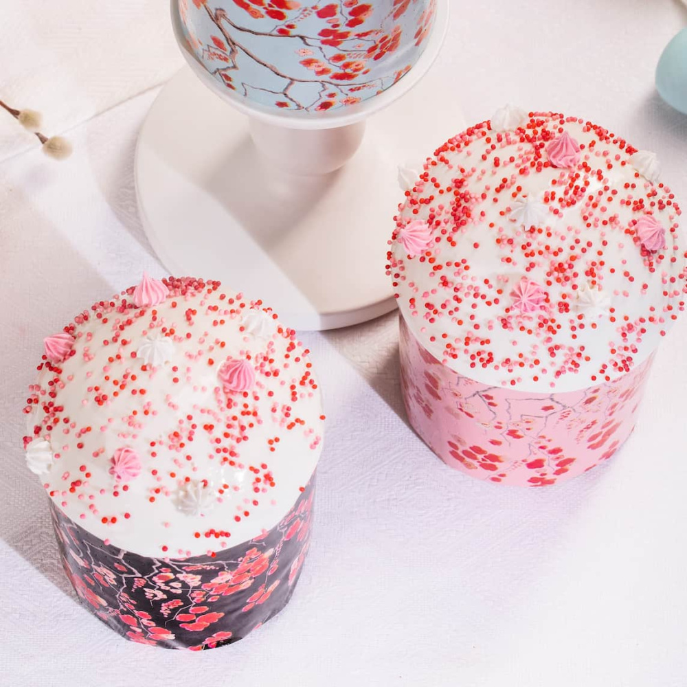 Идея декорирования "Сакура" представляет куличи в бумажной форме "Сакура", вдохновленные прекрасными весенними цветами сакуры. Центральным элементом идеи является микс посыпок от Top Decor, тщательно подобранный для соответствия дизайну куличной формы. Этот микс придает куличам изящные оттенки и уникальные узоры, создавая впечатляющий вид вдохновенного природой декора.