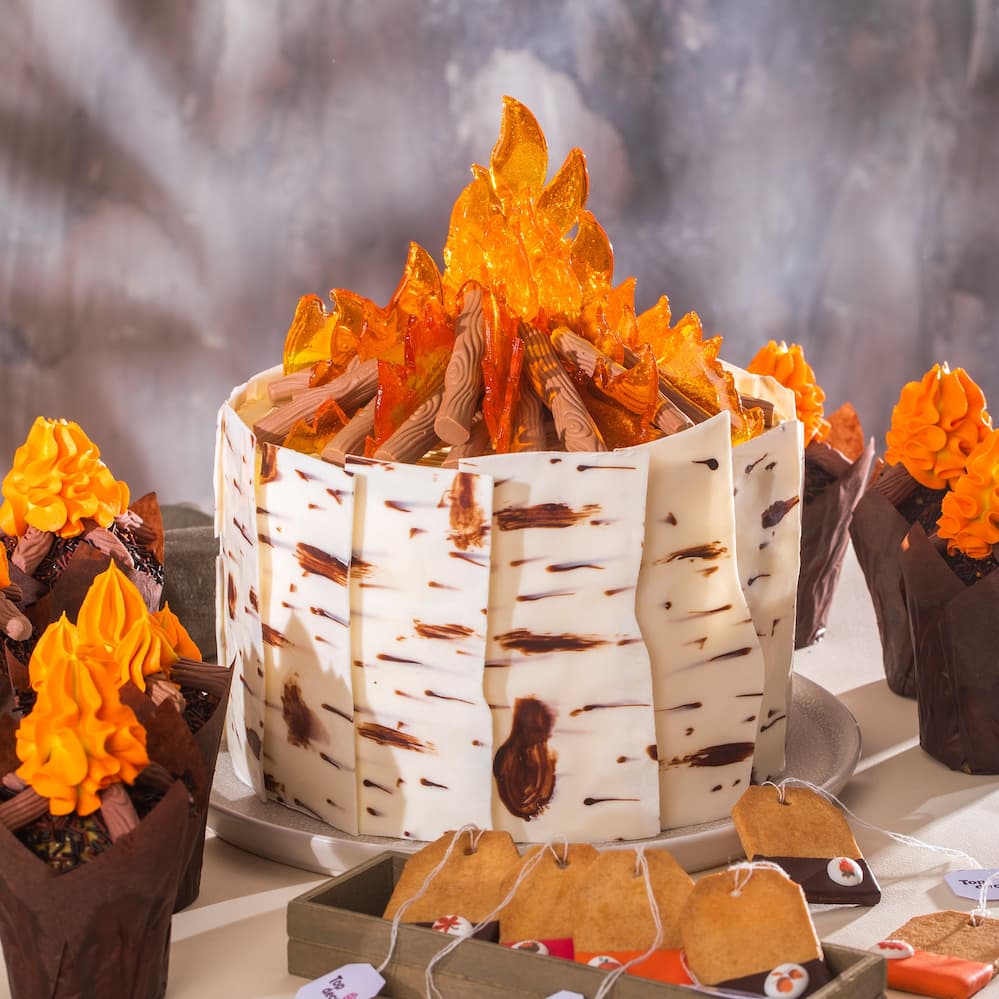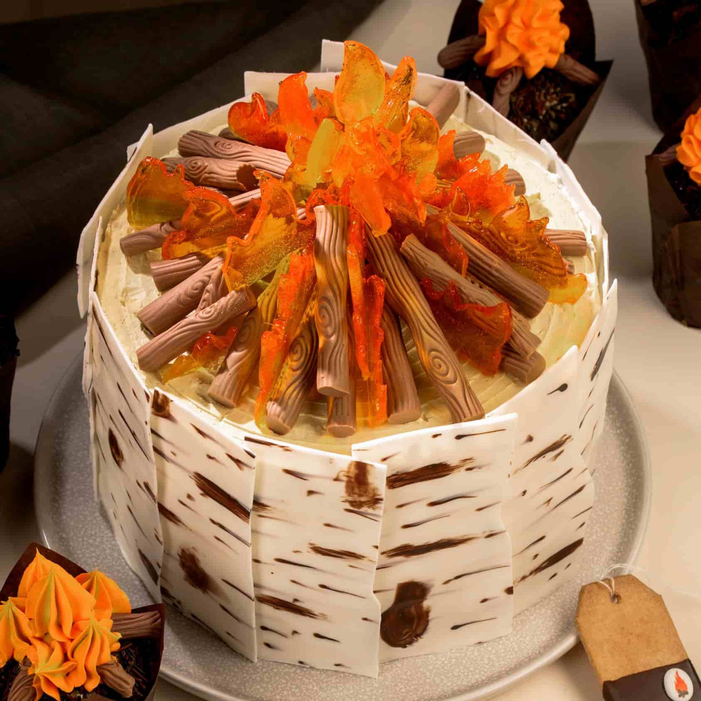 Идея декорирования "Торт "Костер"" представляет собой торт, выполненный в форме костра из березовой коры и бревен. Верхняя часть торта украшена мальтитом, который передает образ языков огня. Этот декор создает впечатление пылающего костра, придавая торту уникальный и впечатляющий вид. Торт "Костер" станет прекрасным акцентом на любом событии, добавляя атмосферу природной красоты и уюта.