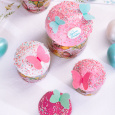 Идея "Цветные бабочки" предлагает куличи в куличных формах, на которых изображены яркие бабочки различных цветов. Каждый кулич покрыт белой, розовой и пурпурной помадкой, а сверху посыпан разнообразными посыпками от компании Top Decor, что создает яркий и красочный декор.