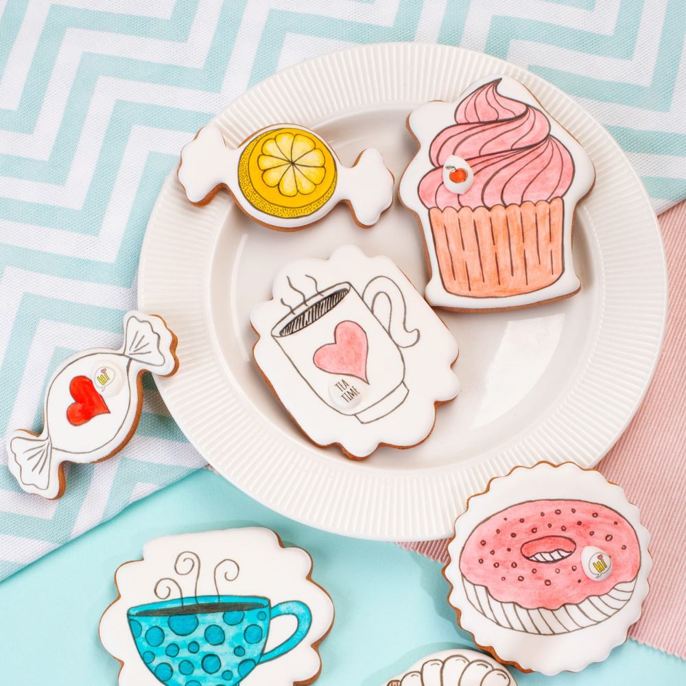 На каждом прянике изображен милый рисунок, нанесенный с помощью пищевых фломастеров Top Decor. Разнообразие оттенков дает возможность воплотить в жизнь самые креативные идеи на ваших пряниках, а уникальный наконечник в виде кисти позволит рисовать как тонкими линиями, так и осуществлять сплошную заливку элементов. Все пряники покрыты айсингом.