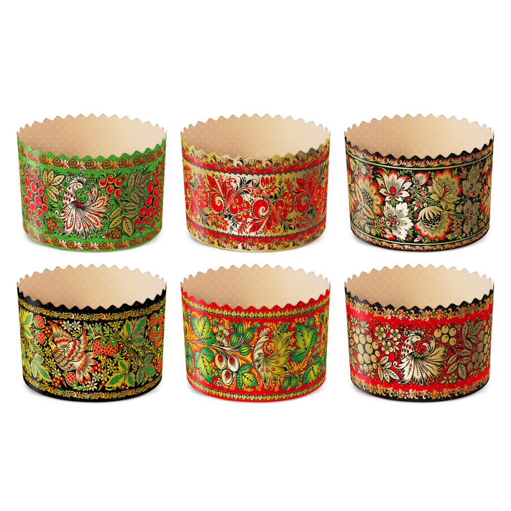 Состав: в рулоне 155 (+/-4) штук бумажных форм Размер: диаметр 134мм, высота 100мм Описание: представляют собой одноразовые формы из специальной бумаги с рисунком для выпечки и последующего хранения куличей. Преимущества: Формы выдерживают температуру выпечки до +230 С. Рекомендуемая температура выпечки куличей - +170-180С.Формы не требуют предварительной смазки . Применение: Куличные формы предназначены для выпечки СДОБНОГО теста