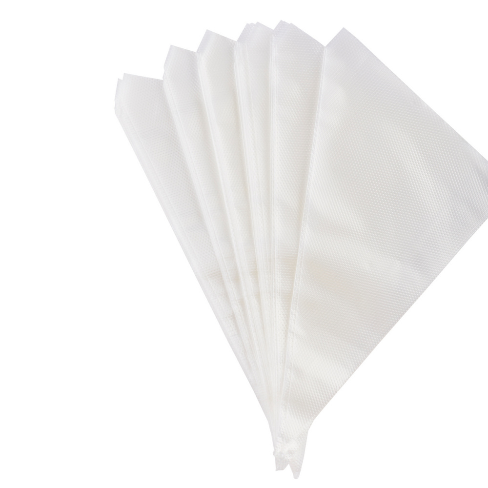 Кондитерские мешки из полиэтилена высокой плотности предназначены для отсаживания кремов, теста и других пищевых масс с помощью кондитерской насадки любого размера и без нее. Можно использовать с переходником. Удобно брать из упаковки, так как каждый мешок отделен от другого. Шероховатая поверхность позволяет прочно удерживать мешок в руке. Обработке и повторному использованию не подлежат. Продаются в упаковке по 100 штук. Длина: 25, 31, 36, 41, 55 см. Способ применения: наполнить массой кондитерский мешок, срезать носик, отсадить необходимое количество массы. С насадкой: насадку поместить внутрь кондитерского мешка, наполнить мешок массой, срезать носик, отсадить массу.