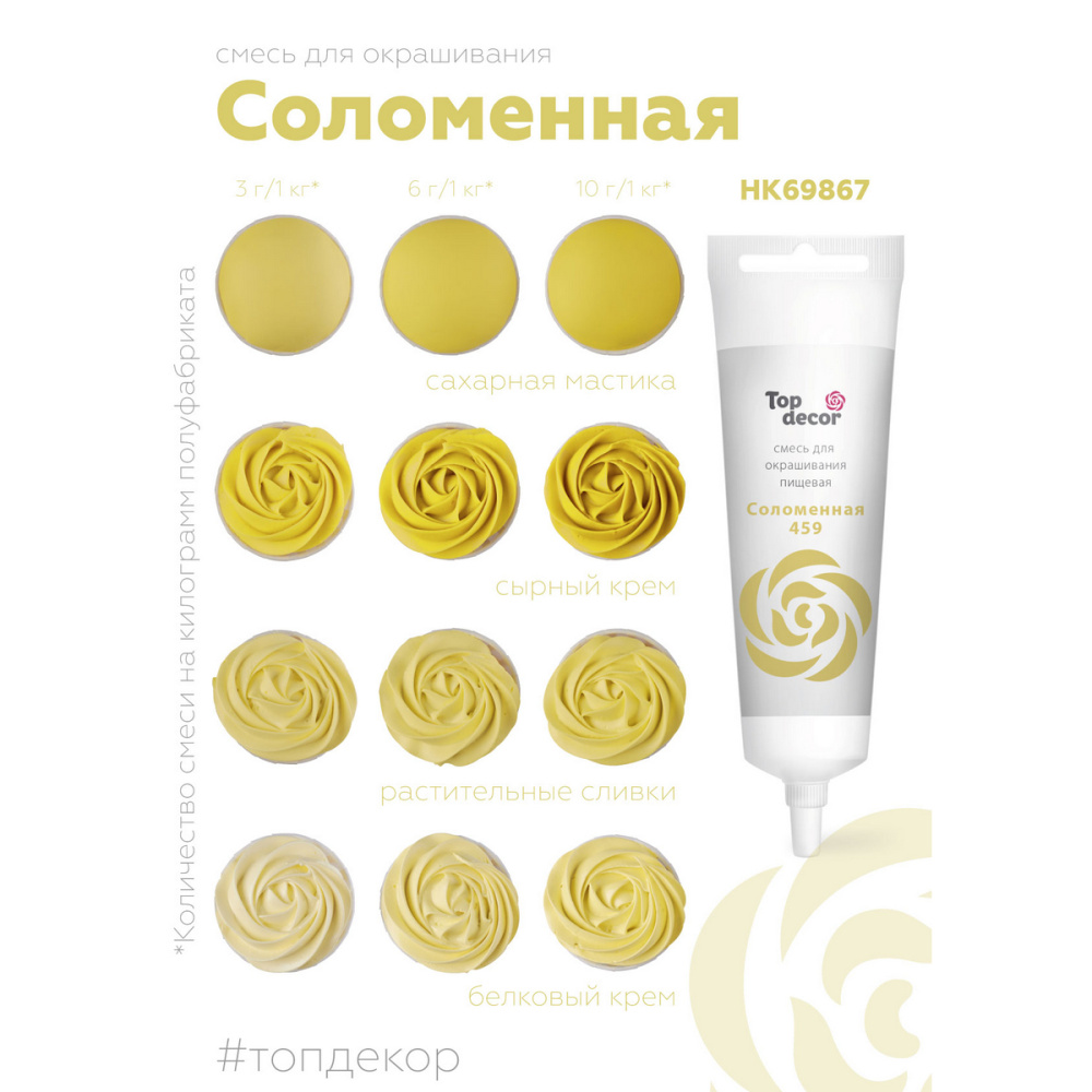 Краситель водорастворимый с высокой концентрацией красящего пигмента. Густая консистенция позволяет ему хорошо окрашивать по всей массе основные кондитерские полуфабрикаты (желе, мусс, крем, тесто, мастика и другие), не изменяя их консистенцию. Не имеет вкуса и аромата, благодаря чему сохраняет первоначальные вкусовые свойства окрашиваемого продукта. Рекомендуемая дозировка: 2-3 капли (0,1-0,15 г) на 100 грамм окрашиваемой массы. Продаётся в тюбике по 100 грамм. Способ применения: перед применением проколите пломбу тюбика, срезать не рекомендуется.
