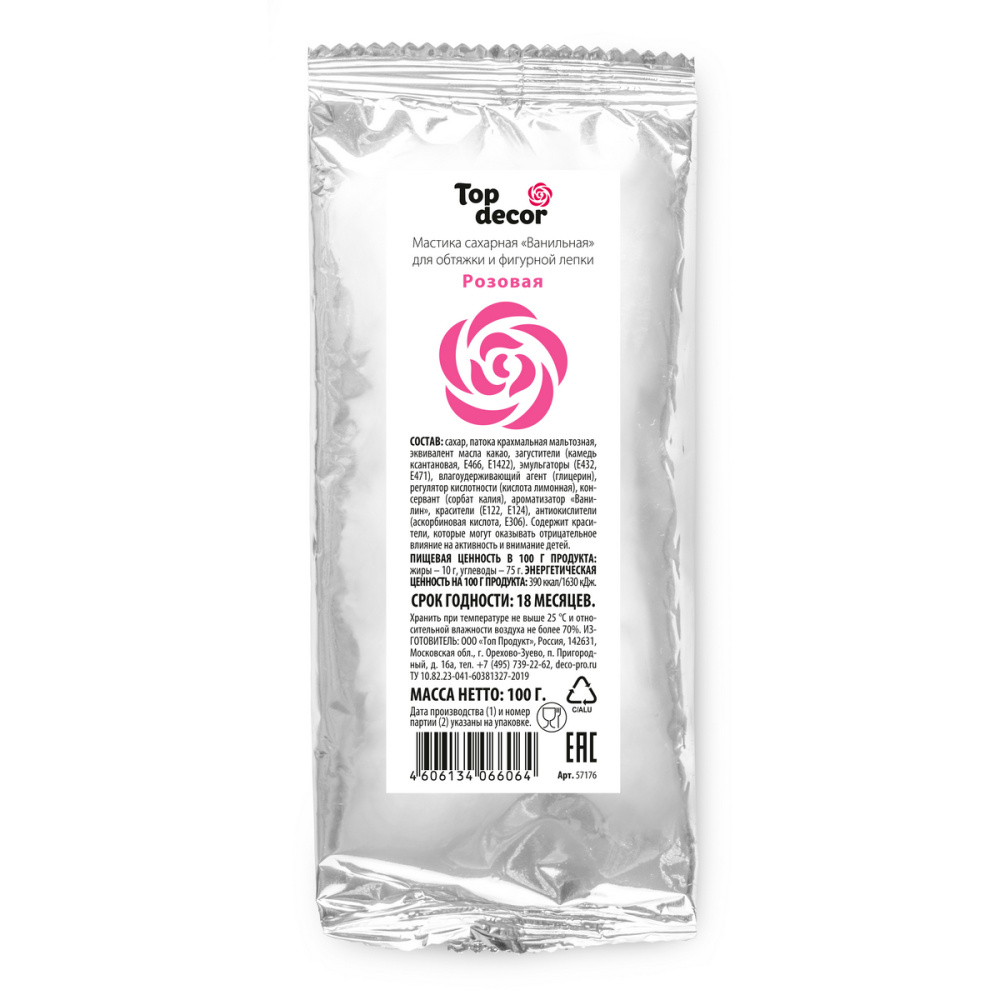 Состав продукта: Сахар, патока крахмальная мальтозная, эквивалент масла какао, загустители (E415, E466, E1422), эмульгаторы (E432, E471), влагоудерживающий агент (E422), регулятор кислотности (Е330), консервант (E202), ароматизатор "Ванилин", красители (E122, E124), антиокислители (Е300, Е306). Содержит красители, которые могут оказывать отрицательное внимание на активность и внимание детей.