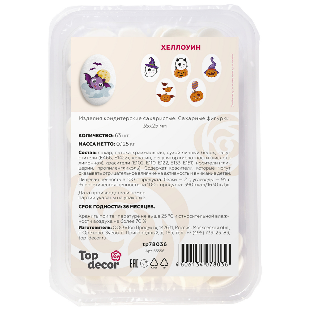 Сах.фигур.Медальоны Хэллоуин,35х25мм, 63 штук