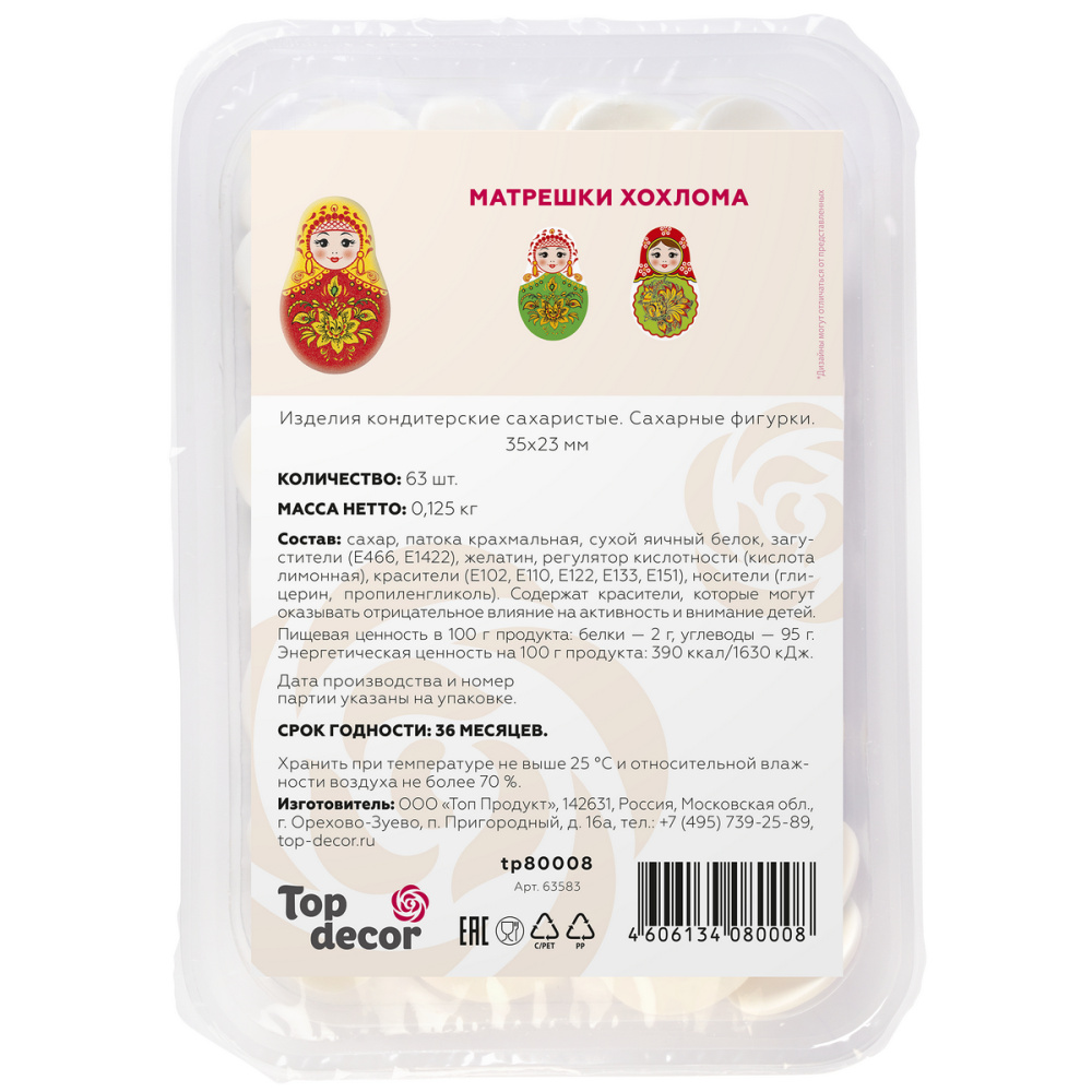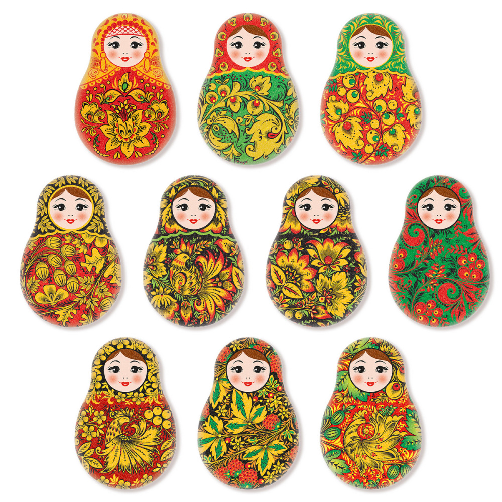 Сах.фигур.Медальоны Матрешки Хохлома,35х23 мм,63шт