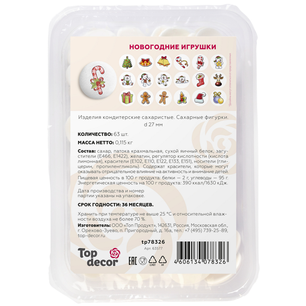 Состав: сахар, патока крахмальная, сухой яичный белок, загустители (Е466,Е1422),желатин, регулятор кислотности (к-та лимонная), красители пищевые (в ассортименте)