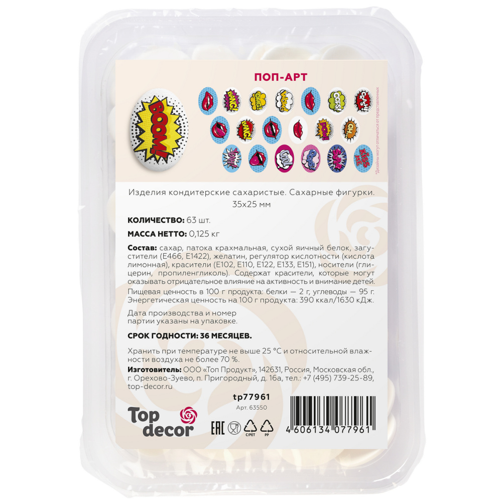 Сах.фигур.Медальоны Поп-Арт,35х25мм, 63 шт