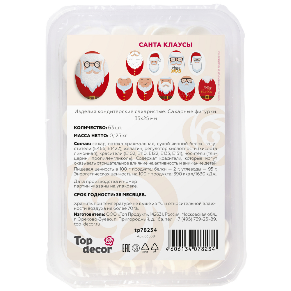 Сах.фигур.Медальоны Санта Клаусы,35х25мм, 63 шт