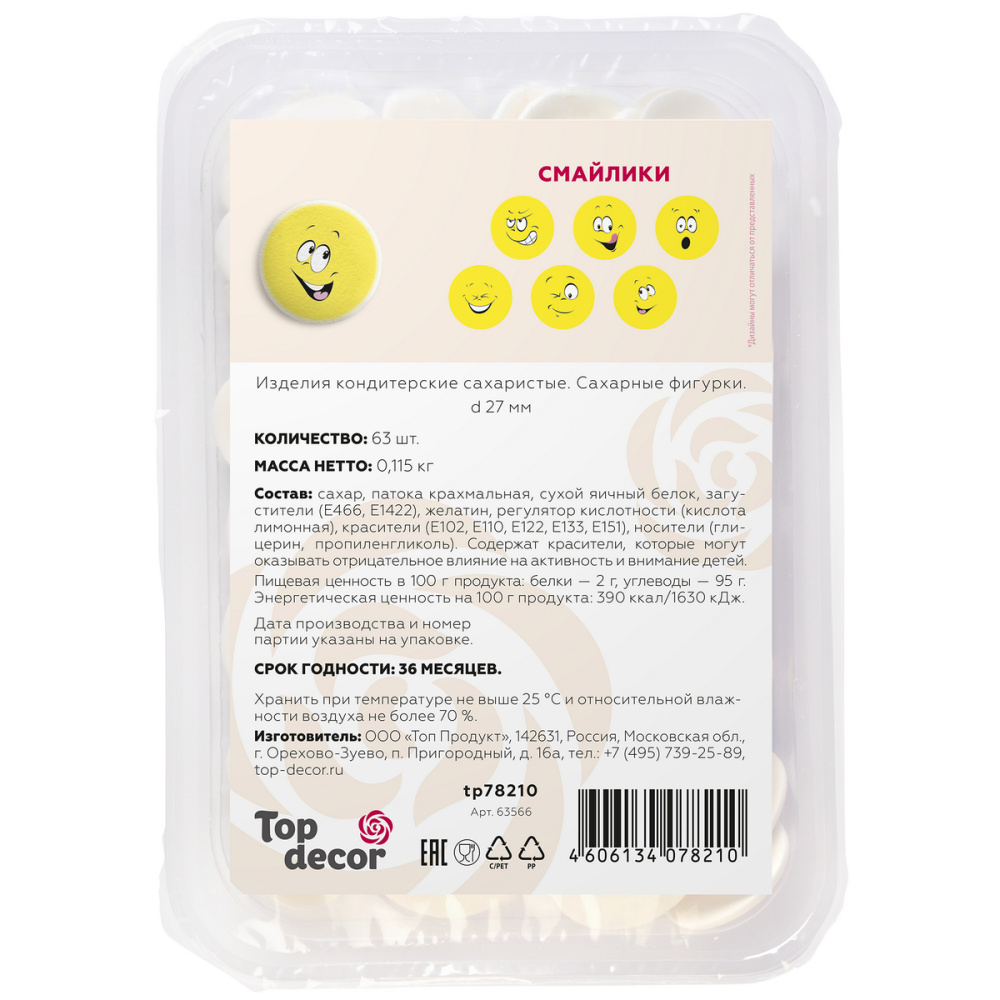 Сах.фигур.Медальоны Смайлики, d27 мм, 63 шт