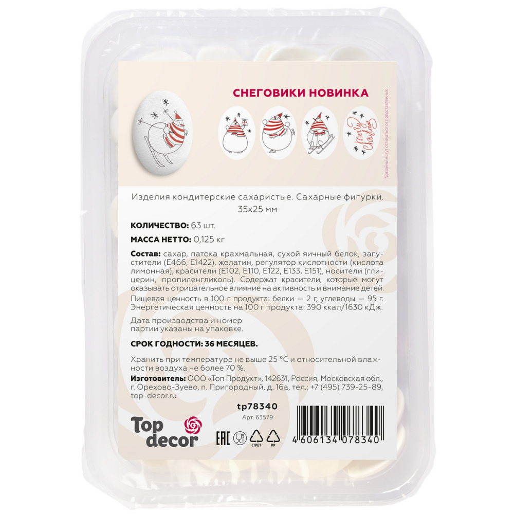 Сах.фигур. медальоны Снеговики новинка,35х25мм,63ш