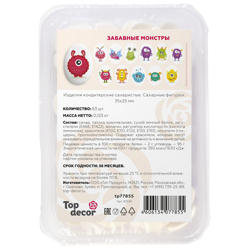 Сах.фигур.Медальоны Забавные Монстры,35х25мм, 63шт