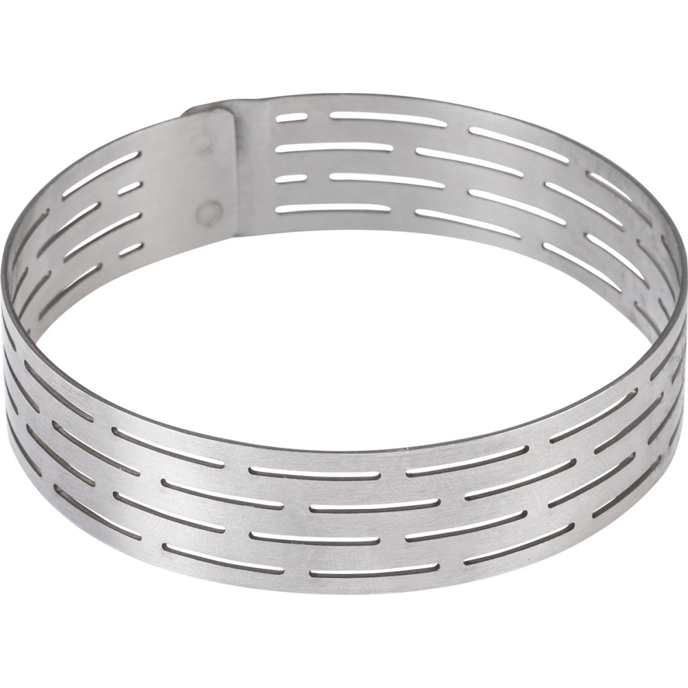 Перфорированная форма для выпечки теста изготовлена из пищевой нержавеющей стали. Перфорация обеспечивает равномерную циркуляцию воздуха и выводит излишнюю влагу, что делает выпечку однородной. Она также позволяет уменьшить риск подгорания и прилипания выпечки к стенкам. Диаметр формы составляет 7 см, высота 2 см, а толщина металла 1 мм. Она не изменяет вкуса изделий и устойчива к механическим повреждениям, что делает ее долговечной и удобной в эксплуатации.