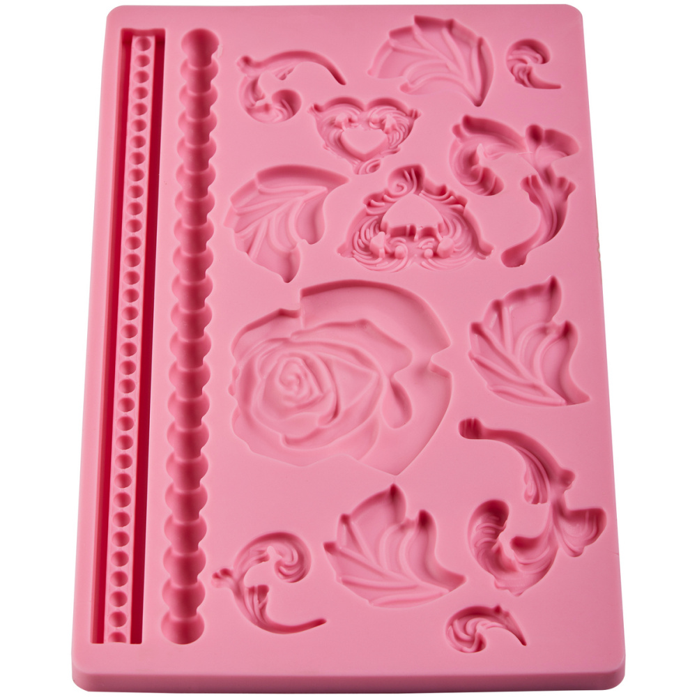 Силиконовые молды предназначены для изготовления декора из сахарной мастики, марципана, шоколада, карамели. Не требует смазки перед использованием; изделие легко вынимается из формы. Могут быть использованы многократно (сотни раз), режим эксплуатации от -30°C до +200°C; легко моются, не портятся при хранении. При работе с сахарной мастикой рекомендуется использовать крахмал или мелкодисперсную сахарную пудру во избежание прилипания массы к форме.