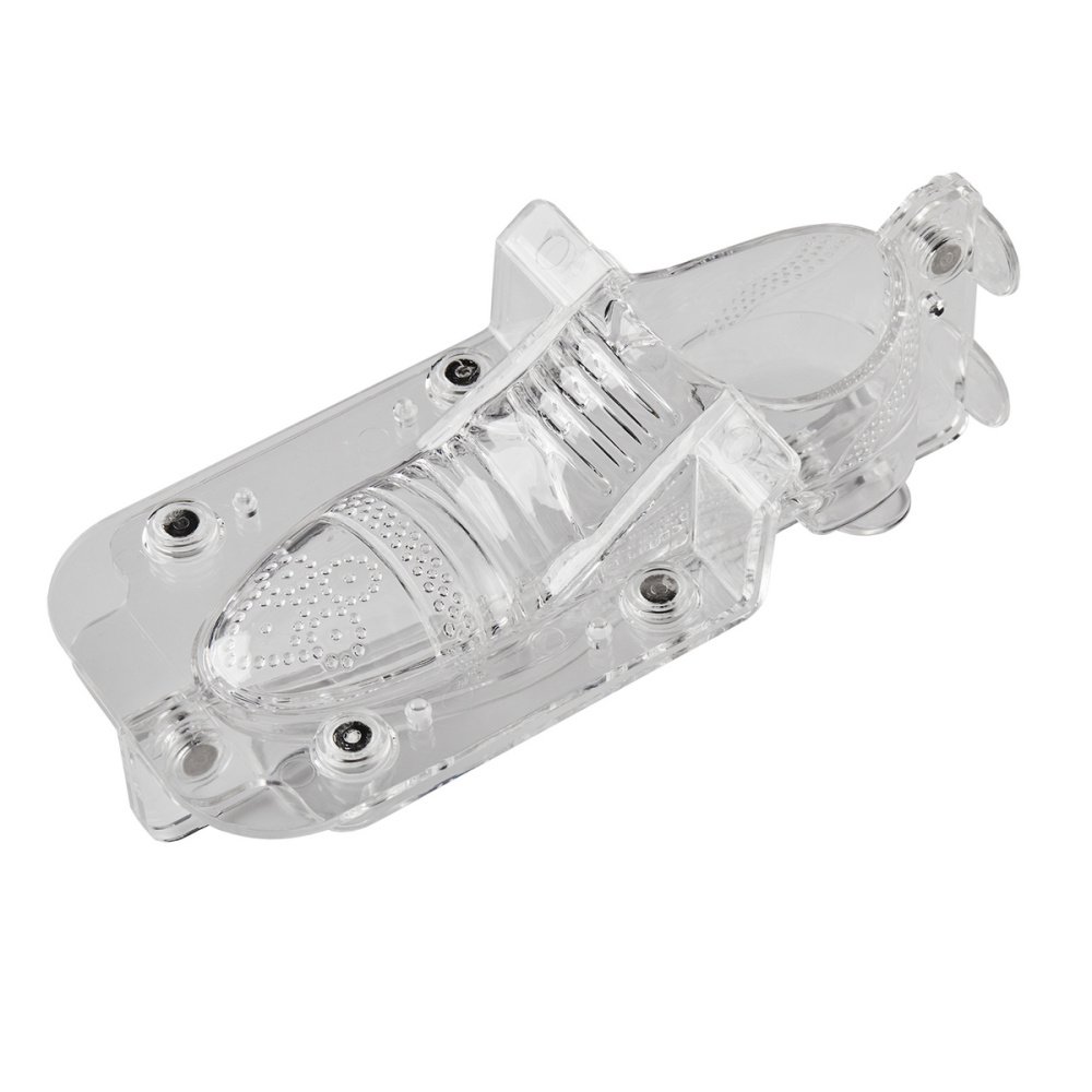 Данная форма из поликарбонатных материалов предназначена для отливки формы из шоколада в виде ботинка. Специальное магнитное крепление позволяет аккуратно, без повреждений извлечь готовую фигурку.