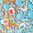 Состав продукта: Сахар, мука рисовая, крахмал кукурузный, мука пшеничная, масло растительное, носители (Е1422, глицерин, пропиленгликоль), декстроза, сухой яичный белок, глазирователи (шеллак, карнаубский воск), патока, эмульгаторы (лецитин рапсовый, целлюлоза микрокристолическая, Е473, Е432), загустители (камедь целлюлозы, Е1400, камедь ксантановая, гуммиарабик), антислеживающийагент (Е554), красители (Е102,Е104,Е110,Е122,Е124,Е133,Е151,Е171),желатин,ароматизатор Ванилин, антиокислители (аскорбиновая кислота, Е306) регуляторы кислотности (кислота лимонная, Е331III). Содержат красители, которые могут оказывать отрицательное влияние на активность и внимание детей