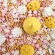 Состав продукта: Сахар, мука пшеничная, крахмал кукурузный, мука рисовая, масло растительное, носители Е1422, Е422, Е1520, декстрозы, сухой яичный белок, глазирователи Шеллак, карнаубский воск, патока крахмальная, эмульгаторы Е322 Е460, Е432, загустители Е1400, Е466, Е415, Е414, красители Е102, Е104,Е110, Е122, Е124, Е133, Е151, Е171, Е172, Е120. антислеживающий агент Е554, желатин, ароматизатор Ванилин, антиокислители Е300, Е306, регуляторы кислотности Е330, Е331IIi. Содержат красители, которые могут оказывать отрицательное влияние на активность и внимание детей.