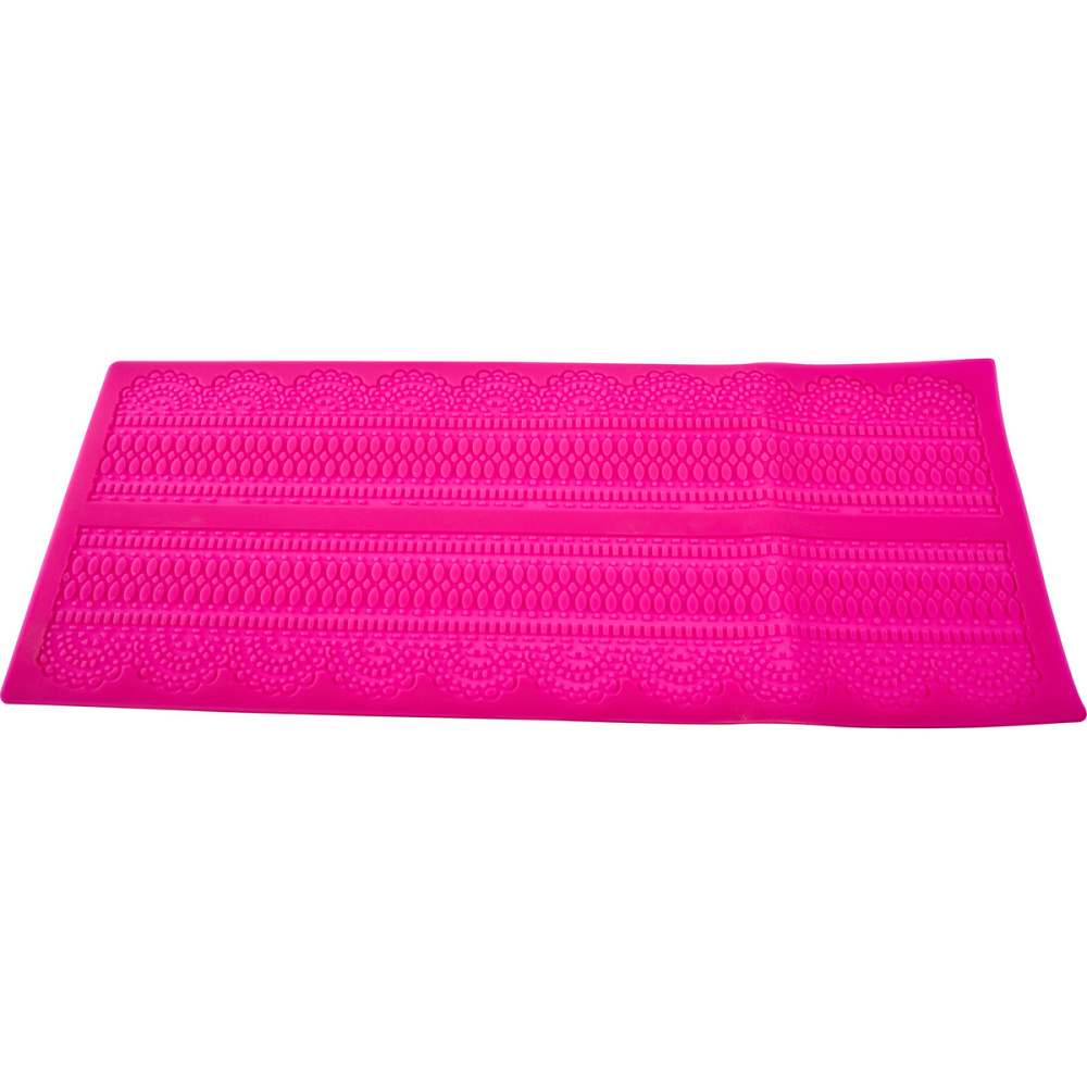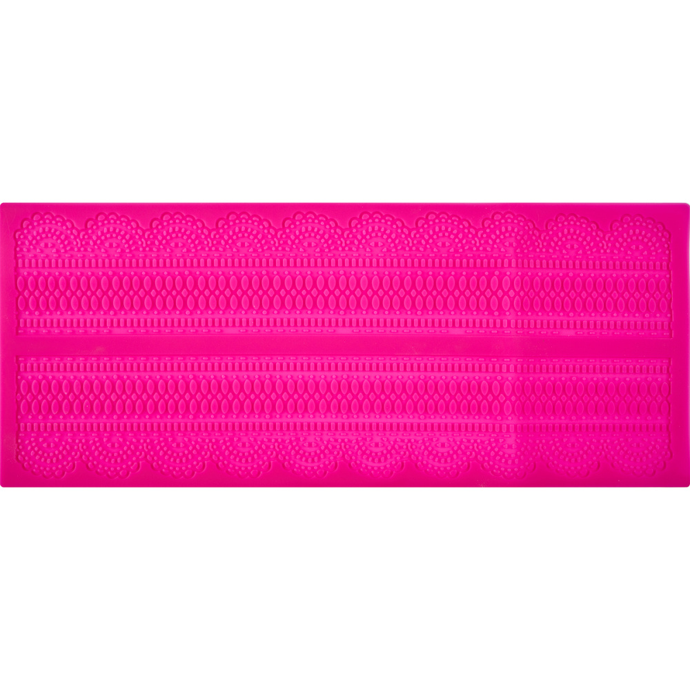 Силиконовый коврик предназначен для изготовления декора "сахарное кружево", для этого на его поверхность нанесен рельефный рисунок. Способ применения: Для изготовления кружевных элементов заполните пастой для изготовления кружевного декора рельеф коврика, удалите излишки. Оставьте до полного высыхания (при комнатной температуре – 24 часа; при 50ºС - 35 минут; при 100ºС - 8 минут). После высыхания аккуратно отделите кружево от коврика и украситьте им изделие.