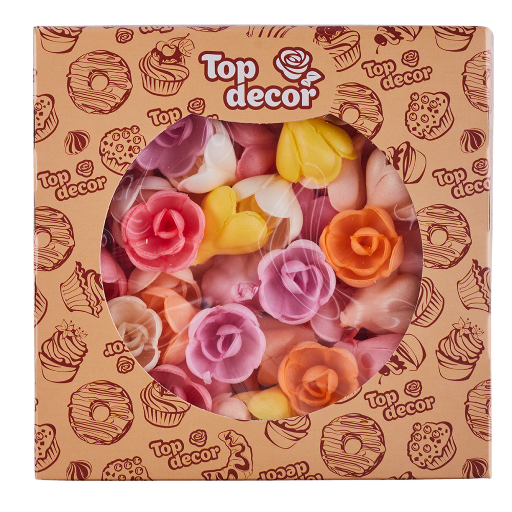 Состав: кукурузный крахмал, модифицированный картофельный крахмал, молоко сухое, сахар, глюкозный сироп, гуммиарабик, пектин, соевый лецитин, лимонная кислота, пищевые красители Е102, Е122, Е133, Е124.. Описание: съедобные украшения на крахмальной основе для быстрого украшения тортов, пирожных, мороженного; могут подвергаться глубокой заморозке.
