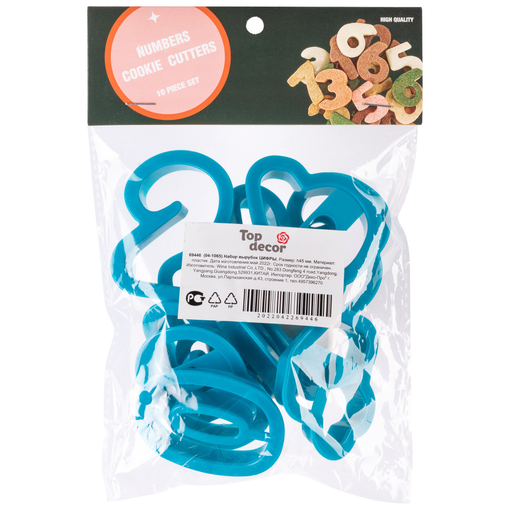Вырубки предназначены для изготовления декора из сахарной мастики и марципана, позволяют быстро украсить любое кондитерское изделие. При работе с сахарной мастикой рекомендуется использовать крахмал или мелкодисперсную сахарную пудру во избежание прилипания массы к вырубке. Способ применения: раскатайте сахарную мастику в пласт нужной толщины, вырежьте заготовку вырубкой. В набор входят вырубки в виде каждой из цифр