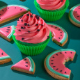 Идея декорирования "Арбузное настроение" представляет собой кексы, которые визуально напоминают сочные кусочки арбуза. Они окрашены с использованием специального арбузного красителя от компании Top-Decor, чтобы достичь идеального оттенка. Кексы также украшены сахарными посыпками в виде черных мини-сердечек, добавляя декоративный акцент и создавая атмосферу арбузного праздника. Эта идея декорирования подходит для любого сезона и мероприятия, где вы хотите подарить сладкие и привлекательные десерты с освежающим арбузным настроением.