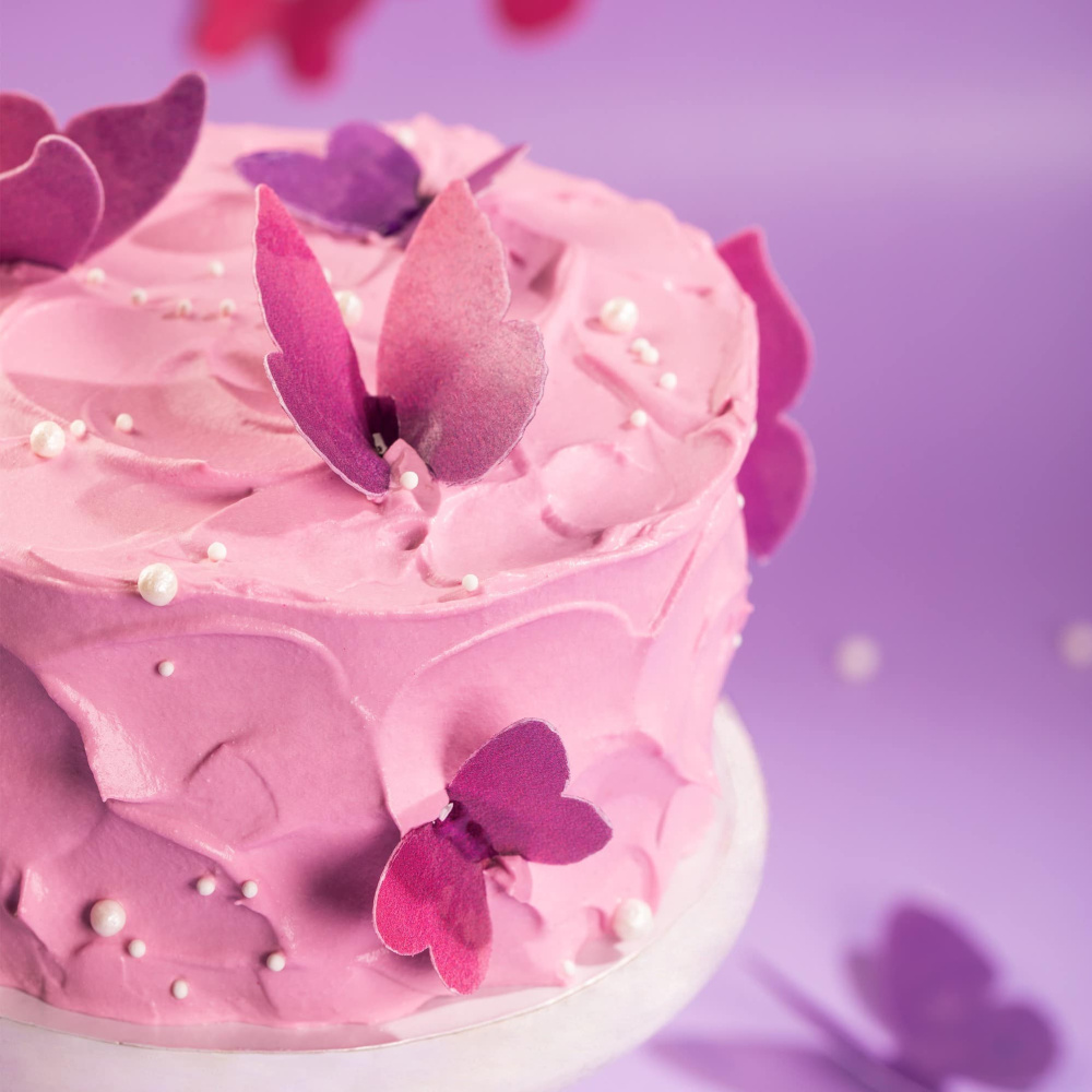 Идея декорирования "Бабочки на торте" представляет собой торт, окрашенный в цвет пищевого красителя "Цвет Чертополоха" от компании Top Decor. Этот цвет создает загадочную и притягательную атмосферу. На торте размещены вафельные бабочки от компании Top Decor, которые придают ему изящность и легкость.