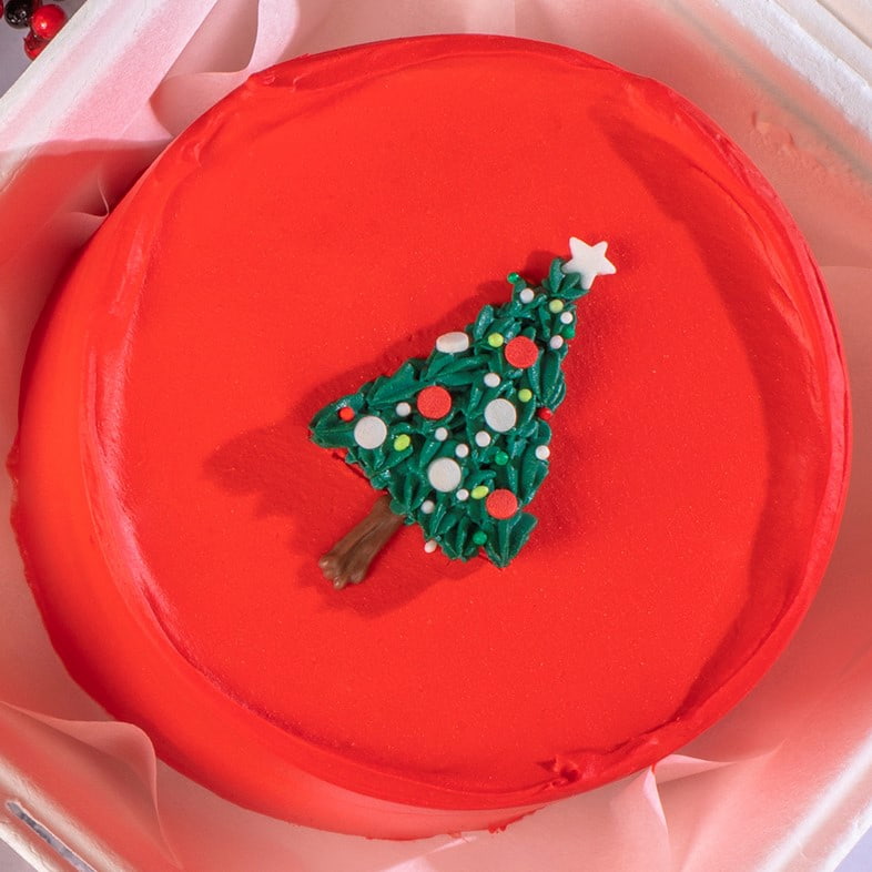 Идея декорирования "Бенто с елочкой" представляет собой бенто торт в новогодней тематике, выполненный в оттенках зимней коллекции Top Decor. На изображении видно, что верхняя часть бенто торта украшена кремовой елкой и использованием различных посыпок.