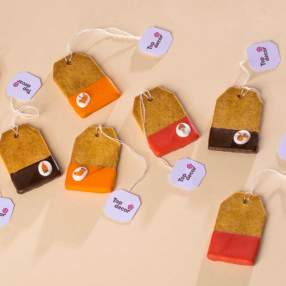 Идея декорирования "Чайные пакетики" представляет собой пряники, которые имеют форму чайных пакетиков. Они выполнены с использованием новых жирорастворимых красителей, которые придают им различные оттенки. Дополнительно пряники украшены сахарными мини-медальонами "Осеннее настроение". Эта декорация создает впечатление чайного атмосферного пространства, принося ощущение уюта и теплоты. Пряники в виде чайных пакетиков станут прекрасным дополнением к чаепитию или подарком для любителей чая и сладостей.