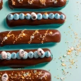 Идея "Десерт для Джентльменов" представляет изысканный десерт, который станет настоящим украшением любого стола. Эклеры, изготовленные из нежного теста, покрыты сахарной помадкой с какао от компании Top Decor, которая придает им уникальный вкус и аромат. Сверху каждый эклер украшен яркими посыпками и мини-медальонами "Джентльмены", что делает его еще более привлекательным и изысканным.