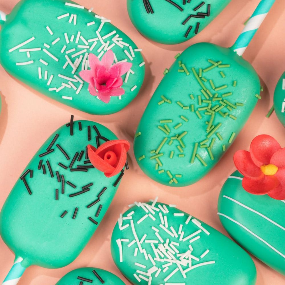 Идея декорирования "Эскимо "Кактус"" представляет собой десерты-эскимо, выполненные в форме кактусов. Их внешний вид напоминает кактусы благодаря уникальной форме и деталям. Эскимо украшены вафельными цветами, которые добавляют изящность и декоративность. Различные посыпки от компании Top-Decor используются для придания эскимо ярких и разнообразных оттенков, создавая привлекательный и красочный образ. Эта идея декорирования придает эскимо "Кактус" оригинальный и забавный вид, и будет радовать всех любителей сладостей своим уникальным сочетанием визуального и вкусового опыта.